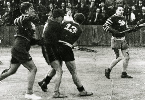 This was certainly true in the first game, where the smooth passing, well-drilled offence ran the Winnipeg squad out of the Olympic Rink with a 19 - 10 victory. The Terriers started fast taking control of the game from start to finish. Potting goals for the Pats were Norm Macalister (2), Craig Lawson (3), Red Hunter (2), Bill Peace (2), and John Arondus (1).